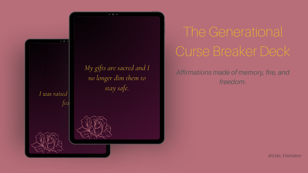 The Generational Curse Breaker Deck holds 50+ affirmations channeled to break cycles, reclaim softness, and honor the sacred truth of who you are.